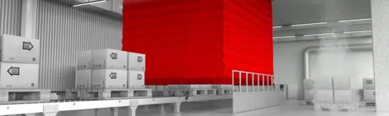 - Barreira testada de acordo com a norma especial DIN EN 1366-7, com exigências substancialmente mais elevadas em relação à norma de ensaio para portas corta-fogo DIN EN 1634-1 (por ex., maior pressão no forno, de forma a permitir sua instalação em locais altos, bem como isolamento necessário em sistemas transportadores, etc.);