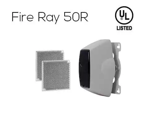 A série FIRERAY 50R / 100R de detectores de fumaça por feixe infravermelho refletivo é composta de uma única unidade que incorpora um transmissor e receptor de infravermelho. O sinal é refletido por um prisma e analisado quanto à presença de fumaça. O sistema é projetado para ser montado de modo que o feixe se projetará entre 0,3 e 0,6 metros abaixo e paralelo ao teto. A detecção lateral pode ser de até 7,5 metros de cada lado do feixe