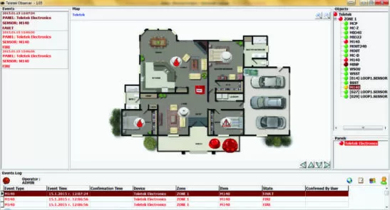 Observer é uma aplicação de software para monitoramento de sites equipados com sistemas de alarme de incêndio endereçáveis da Teletek Electronics. O software monitora a condição e o estado dos detectores com suas respectivas zonas e nomes. Também detecta falhas no painel e permite que o painel seja controlado. O observador sinaliza visualmente e audivelmente em caso de alarme ou falha. Se você tem rede VPN, por exemplo, você poderá conectar até 32 painéis a 1 software Observer.