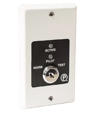 O módulo PAD100-DRTS não requer um endereço de loop SLC. O PAD100-DRTS fornece um interruptor de teste remoto supervisionado para o detector de duto PAD100-DUCTR. Os LEDs Ativo e Piloto fornecem o status do detector PAD100-DUCTR. O interruptor com chave permite o teste remoto do detector de duto PAD100-DUCTR.